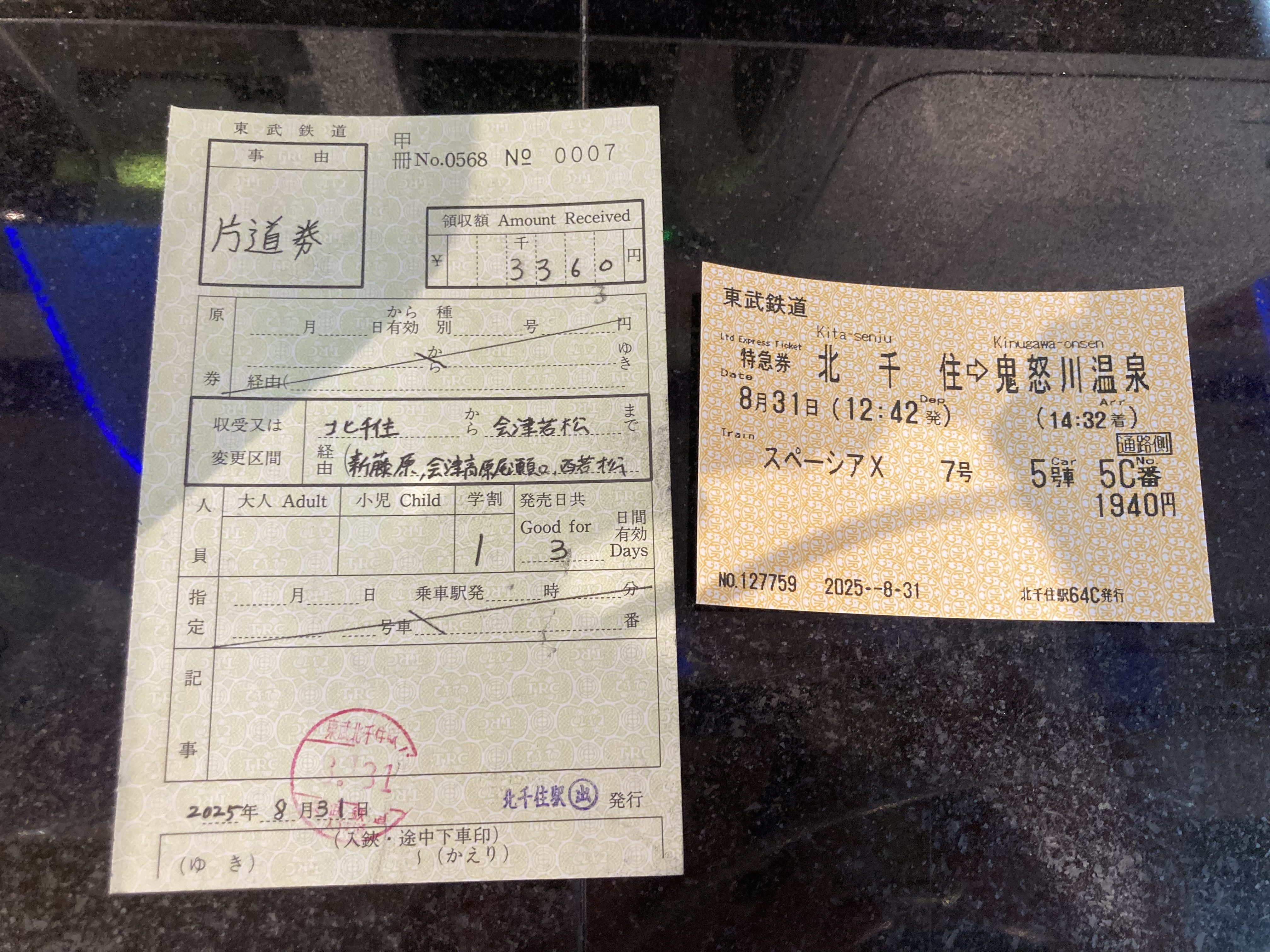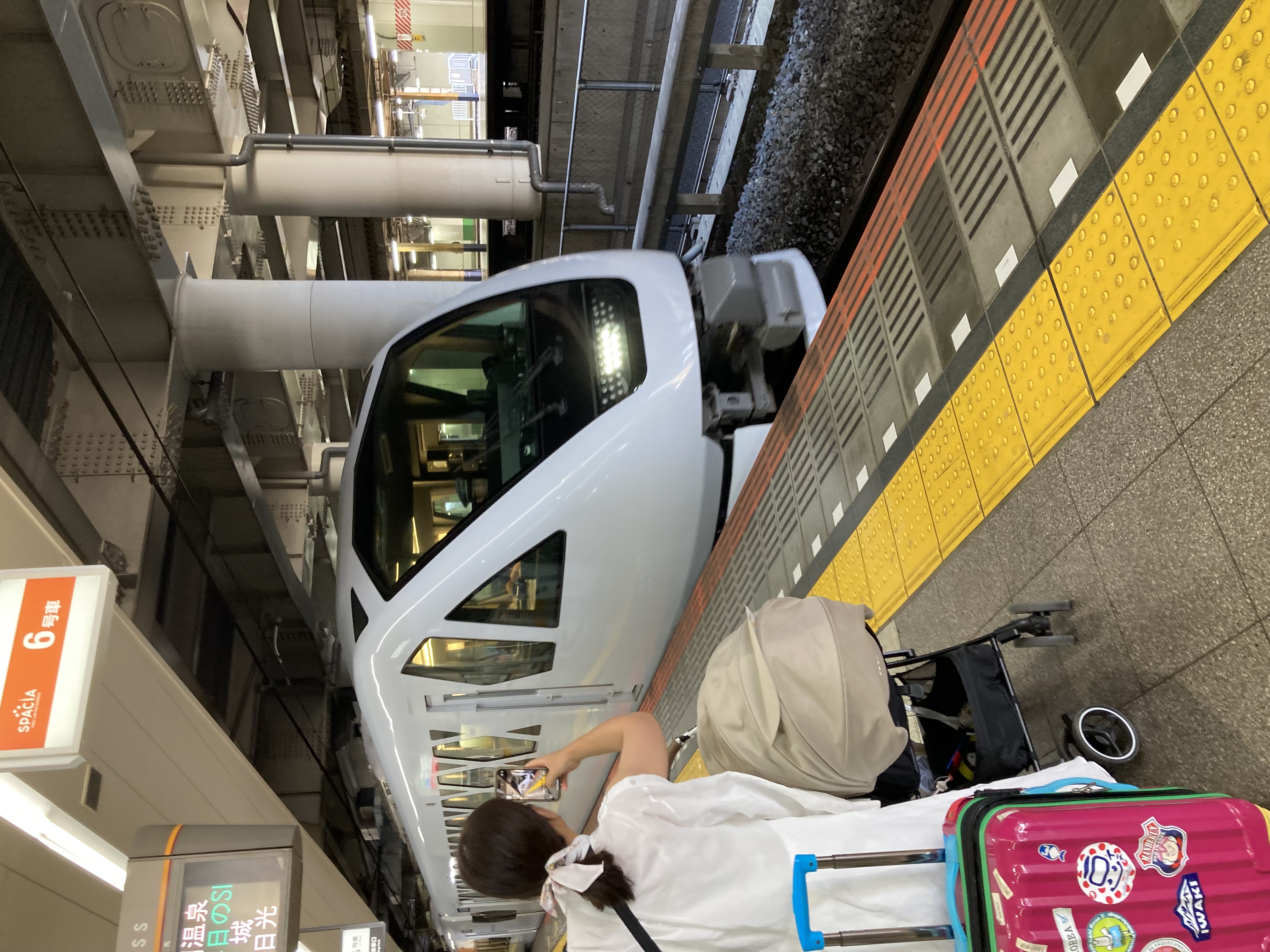 最初は普通列車で行く予定で30分弱くらい切符を発行する時間を取っていたのだけれど、切符を作ってもらう間に列車が行っちゃった。どうしようかと悩んだ結果、2000円追加してスペーシアXに乗ることにした。初めて乗るし、つい出来心で。